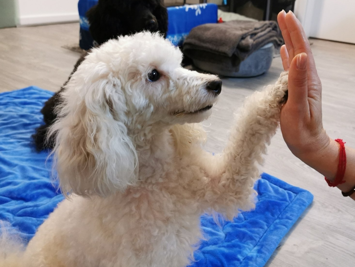 Die noch kleine weiße Filli darunter ist im März 2022 zu unserem Pudelrudel hinzu gekommen. Sie ist im Januar 2022 geboren, ist ebenfalls kerngesund und quicklebendig. Eine richtig lebendige und neugierige Pudeline mit ganz liebem Charakter. Wissbegierig und tobefreudig, ohne Stress zu verursachen...
